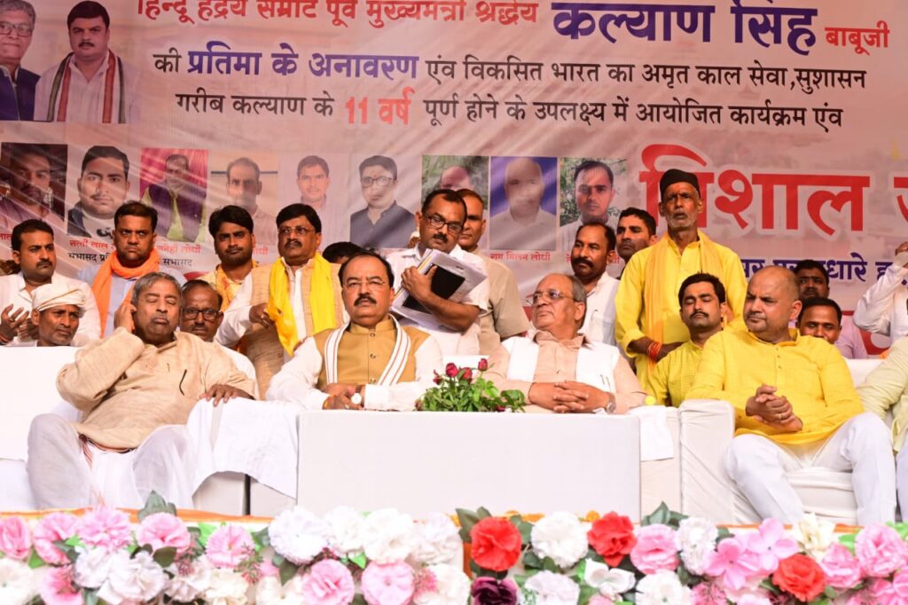 उप मुख्यमंत्री केशव प्रसाद मौर्य ने मूर्ति अनावरण के पश्चात विकसित भारत का अमृत काल,सेवा, सुशासन और गरीब कल्याण के 11 वर्ष पूर्ण होने के उपलक्ष्य में आयोजित जनसभा कार्यक्रम में पहुंचे जहां उन्होंने सर्वप्रथम विभिन्न विभागों द्वारा लगाए गए प्रदर्शनी में स्टालों का अवलोकन किया। इसके बाद उन्होंने अपने सम्बोधन मे कहा कि आज गुजरात के अहमदाबाद मे विमान हादसा हुआ है। हादसे की सूचना प्राप्त होने पर कार्यक्रम को स्थगित करने का विचार था, परंतु रुदौली की जनता का पूर्व मुख्यमंत्री कल्याण सिंह के प्रति प्रेम व सम्मान को देखते हुए भारी मन से आना पड़ा। इसके उपरांत उन्होंने मा० विधायक रुदौली से आग्रह किया कि कुछ दिनों पश्चात यहां पर पुनः एक बड़े कार्यक्रम का आयोजन किया जाए, जिसमें हम सभी शामिल होंगे। उप मुख्यमंत्री श्री केशव प्रसाद मौर्य ने केंद्र सरकार के सेवा, सुशासन और गरीब कल्याण के 11 वर्ष पूर्ण होने के उपलक्ष्य में कहा कि केंद्र सरकार द्वारा विभिन्न जन कल्याणकारी योजनाएं चलाई जा रही है,जिसका लाभ प्रत्येक पात्र व्यक्ति को मिल रहा है। उन्होंने कहा डबल इंजन की सरकार द्वारा गरीबों को मुफ्त राशन, इलाज के लिए 5 लाख तक का आयुष्मान कार्ड, महिलाओं के लिए उज्जवला गैस योजना सहित अन्य अनेक जनकल्याणकारी योजनाएं चलाई जा रही है।